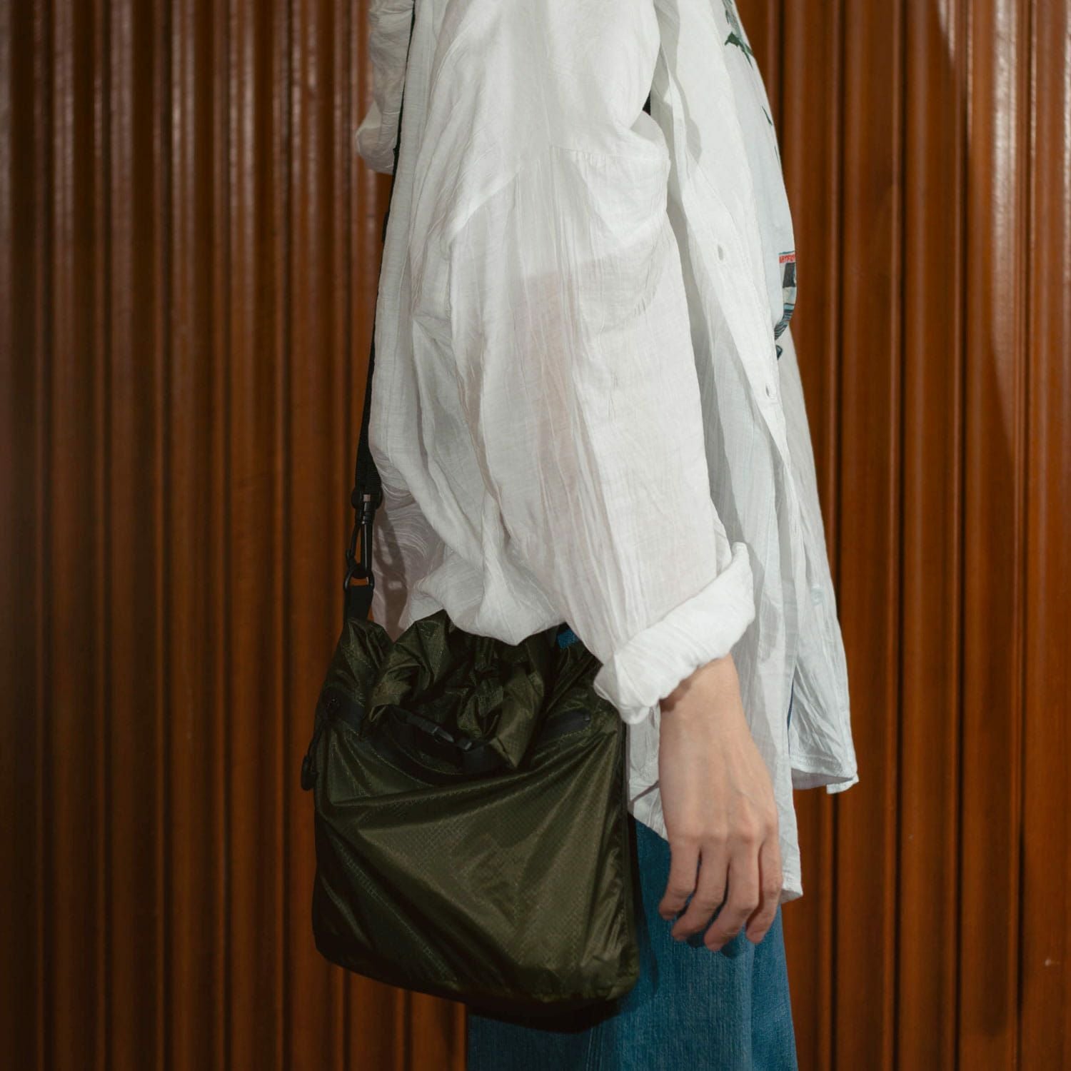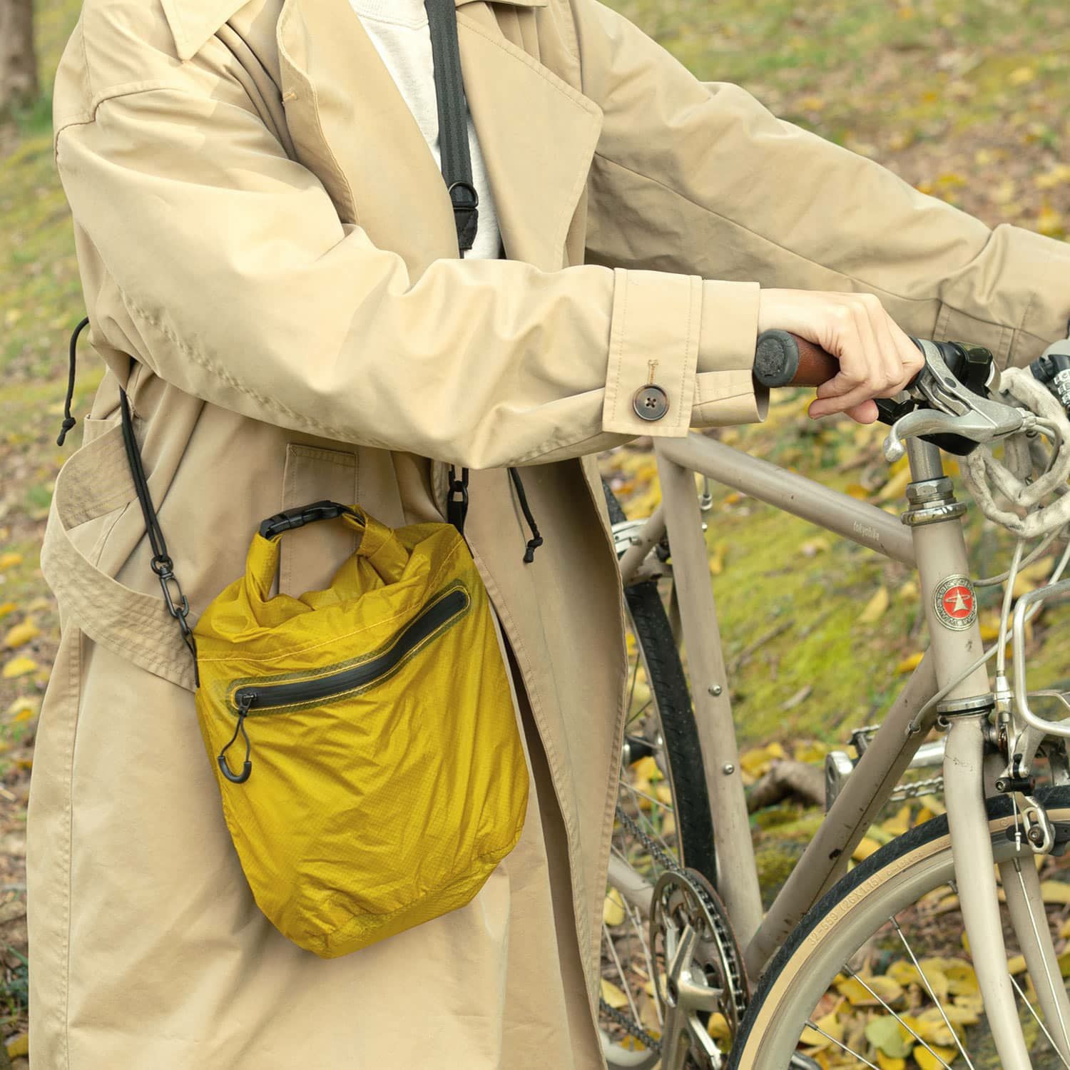 使わない時はクルクルとコンパクトに丸めてバッグの持ち手などにつけておいても。荷物が増えた時のサブバッグとしても使えます。