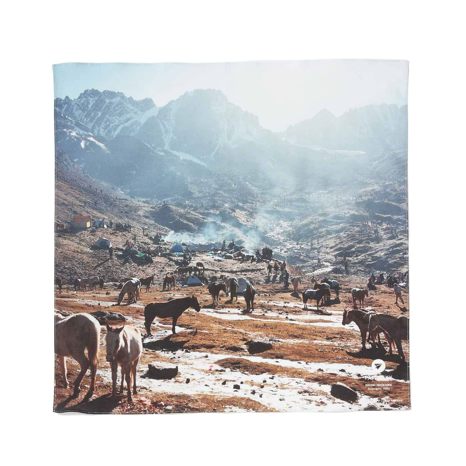 写真家・石川直樹さんの展覧会『この星の光の地図を写す』に合わせてコラボした、アウトドア・バンダナ。世界各地を旅する石川さんが、ネパール(クーンブ)、カナダ(イヌヴィック)、そしてペルー(アウサンガテ)の3ヶ所で撮影した大自然の美しい風景をプリントしました。上質のコットンを使用したシーチング生地で、やわらかくて耐久性に優れたバンダナです。ハンカチとしてはもちろん、首に巻いてスカーフにしたり、バックパックやテントにくくりつけて目印にも。このバンダナをポケットの中に携えて、世界の旅に出かけよう。