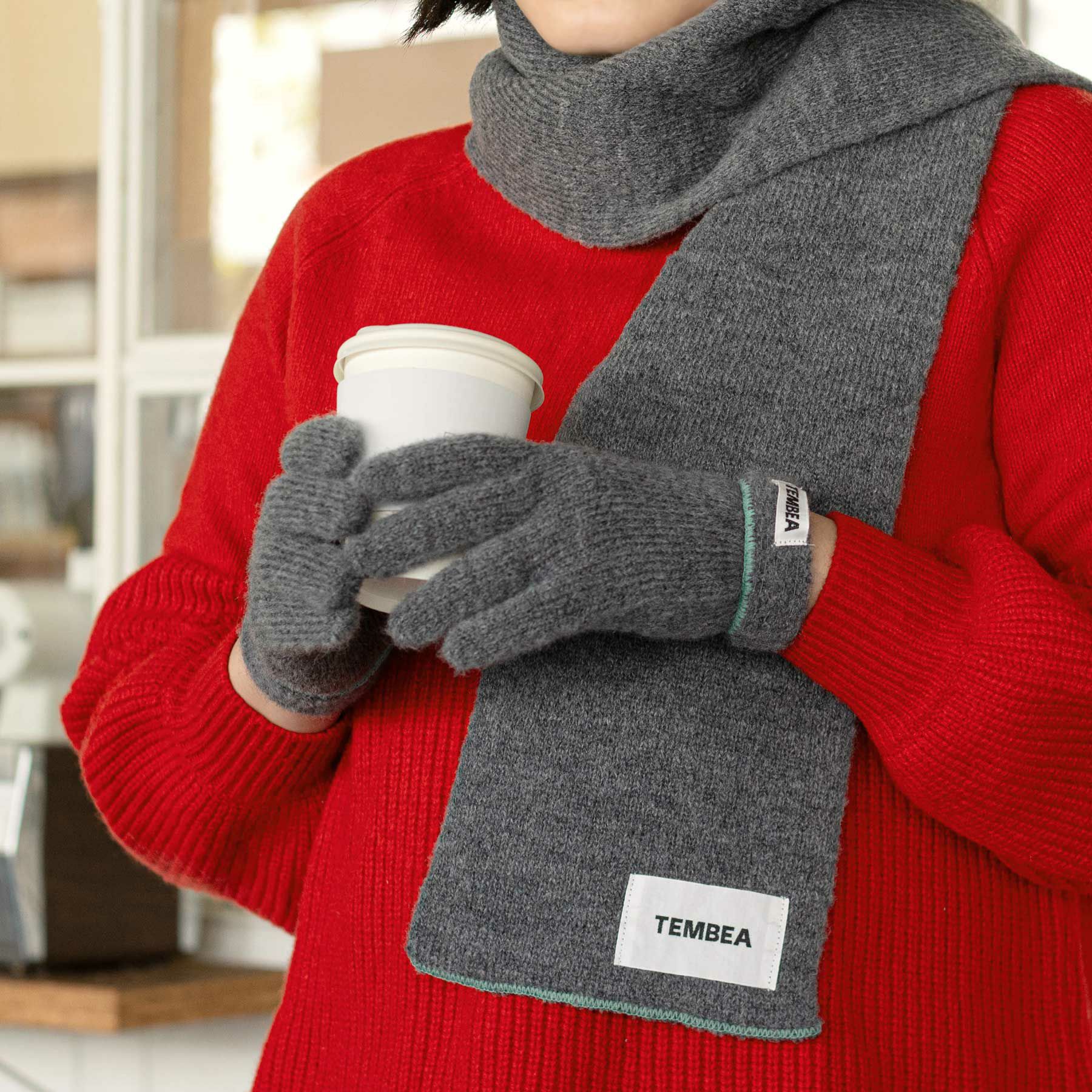 同シリーズのマフラーと一緒にコーディネイトするのもおすすめです。