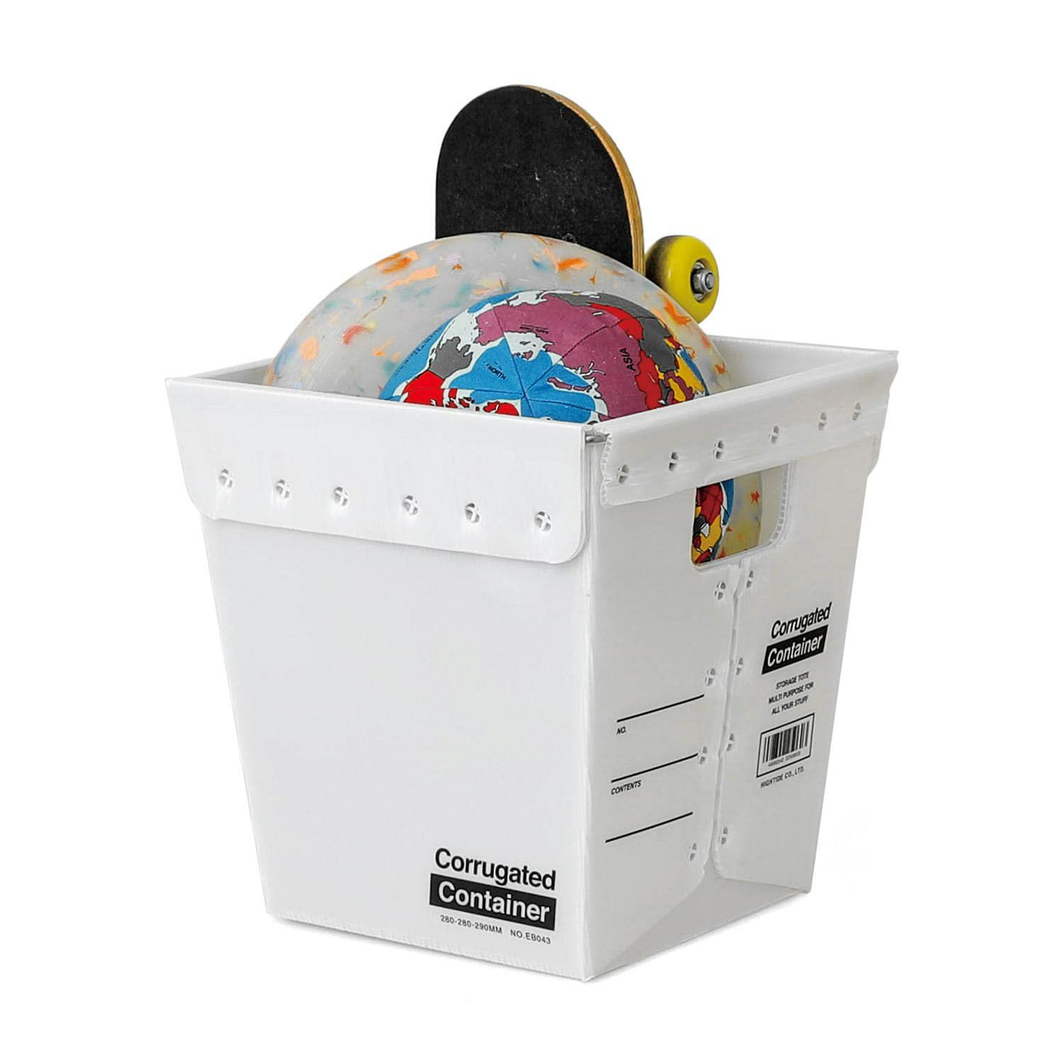 アメリカの配達業者に広く使われるメールボックスをベースに作った収納ボックスです。素材は耐久性に優れたプラダン(プラスチックダンボール)を使用。中空構造で軽さと強度を両立しています。ボックスの縁にはスチールワイヤーが入っており、さらに頑丈に。もともと業務用でラフな作りの部分も多少ありますが、水に濡れても拭けばOKなので汚れを気にせずタフにお使いいただけます。