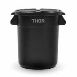 ゴミ箱やプランターカバー、ちょっとした収納に丁度いいTHOR(ソー)のラウンドコンテナ。元々はホテルや病院などの業務用として設計されたためかなりの大容量でしたが、大小2サイズで12Lと23Lにリサイズしてより扱いやすいツールになりました。軽く、蓋がズレにくいのも特徴です。見た目の良さがどんな場所でも絵になりますので、ご自宅はもちろん、カフェなど飲食店でも不快感を与えずお使いいただけます。もし屋内だと大きいならベランダや倉庫に設置してもいいですね。
