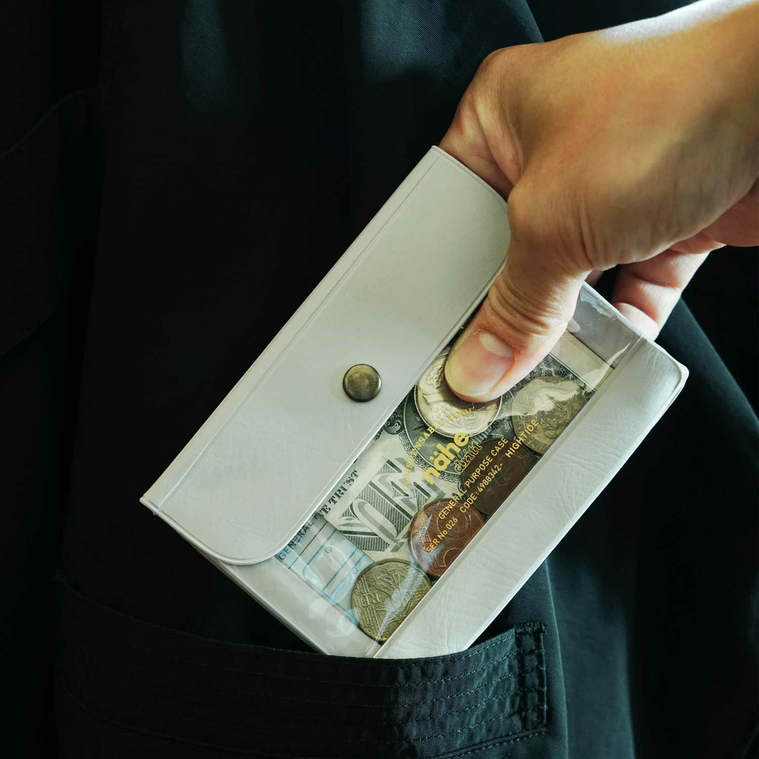 透明PVCで中身が見えるジェネラルパーパスケースです。1番ちいさなこのサイズは、カードやチケット、レシートなどの紙もの収納に便利。ありがちな名刺ぴったりではなく、A7サイズなので幅広い用途にお使いいただけます。収納するものが少ないときはマチを折り込んでコンパクトに、厚みがあるものにも対応できる優れもの。