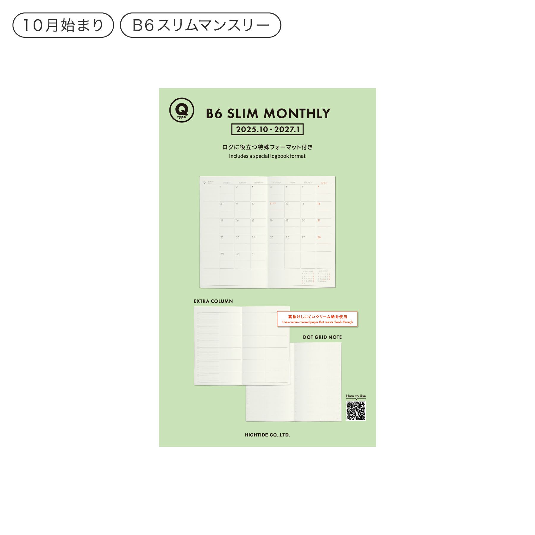 他の画像を見る HIGHTIDE 手帳 2026 Qタイプ リフィル / B6 スリム マンスリー / 2025年10月始まり 通常 ¥ 1,430 のところ ¥ 1,001 税込 在庫切れ カートに入れる お気に入りに登録する