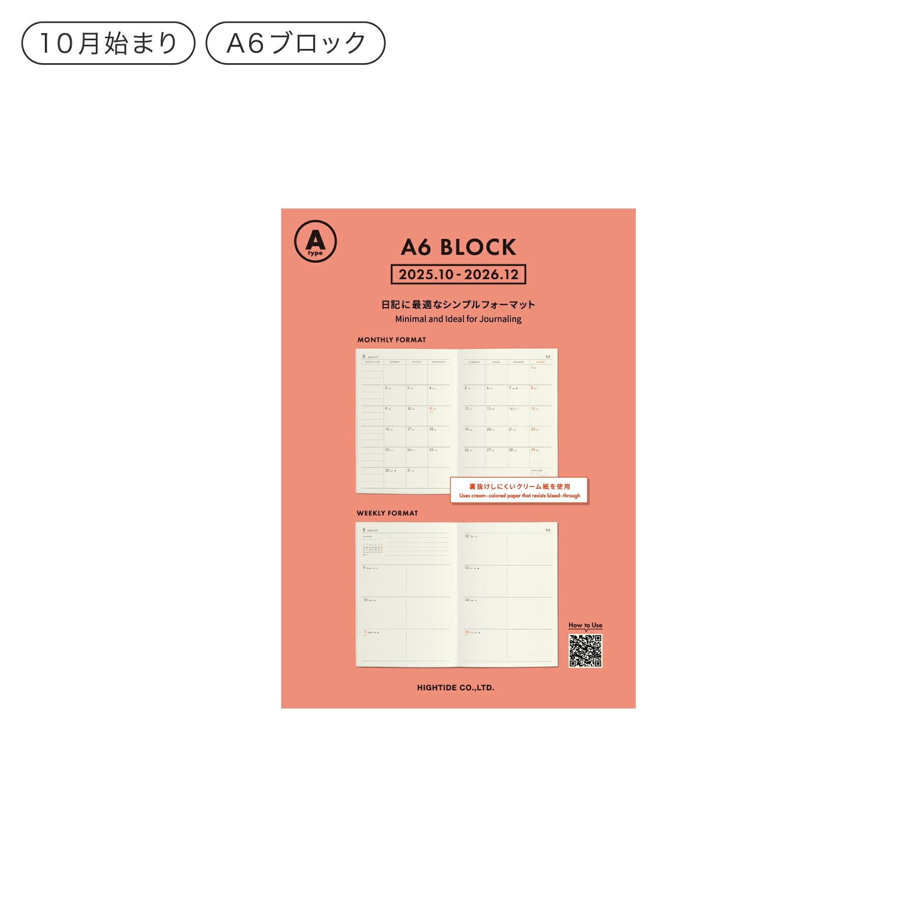 他の画像を見る メール便送料無料 HIGHTIDE 手帳 2026 レプレ / A6 週間ブロック / 2025年10月始まり 通常 ¥ 1,980 のところ ¥ 1,386 税込 カートに入れる お気に入りに登録する