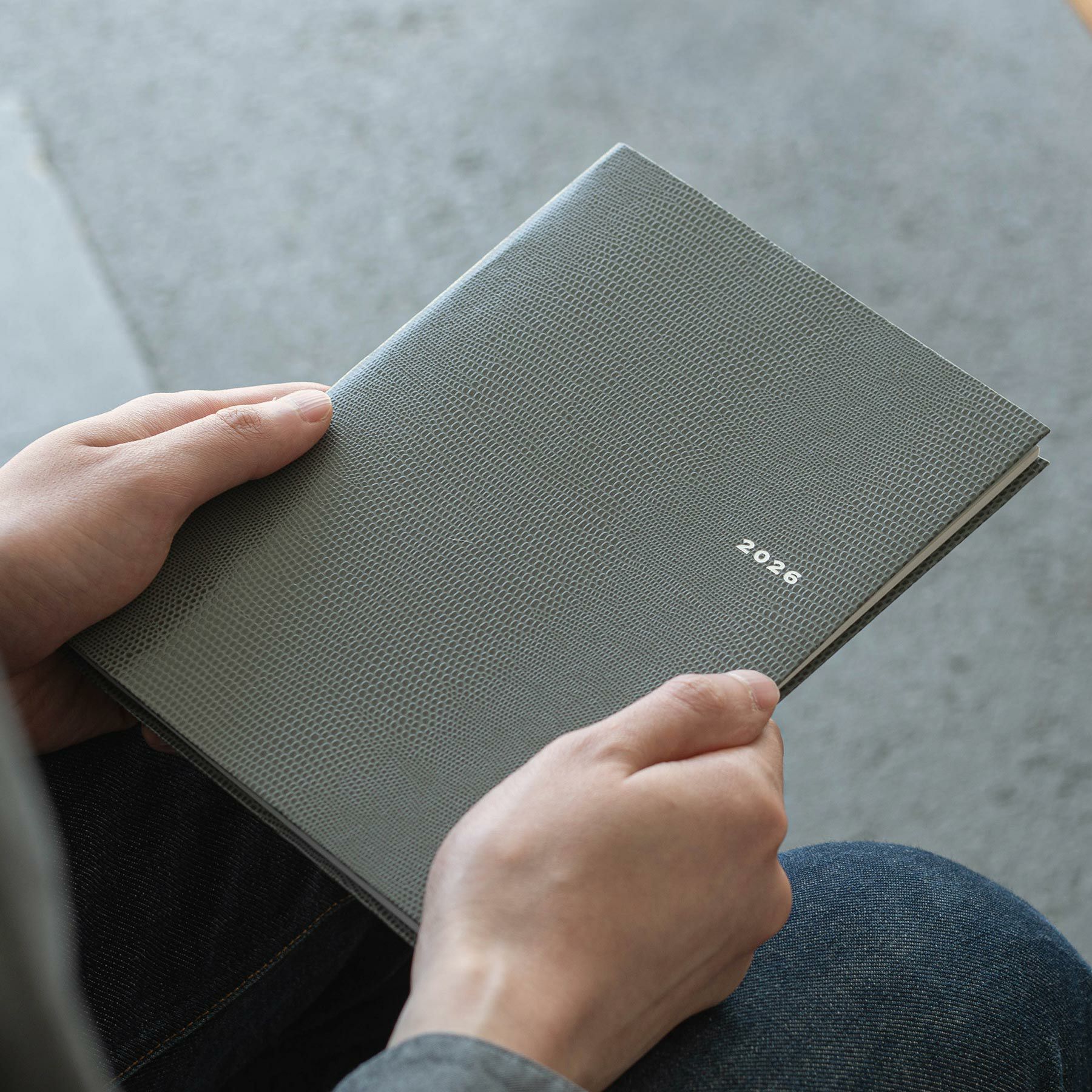 リザード革を模した特殊紙の表紙。上品な仕立ての1冊です。高級感のある佇まいでビジネスユーザーはもちろん、男女問わず幅広い層からの支持を得ています。