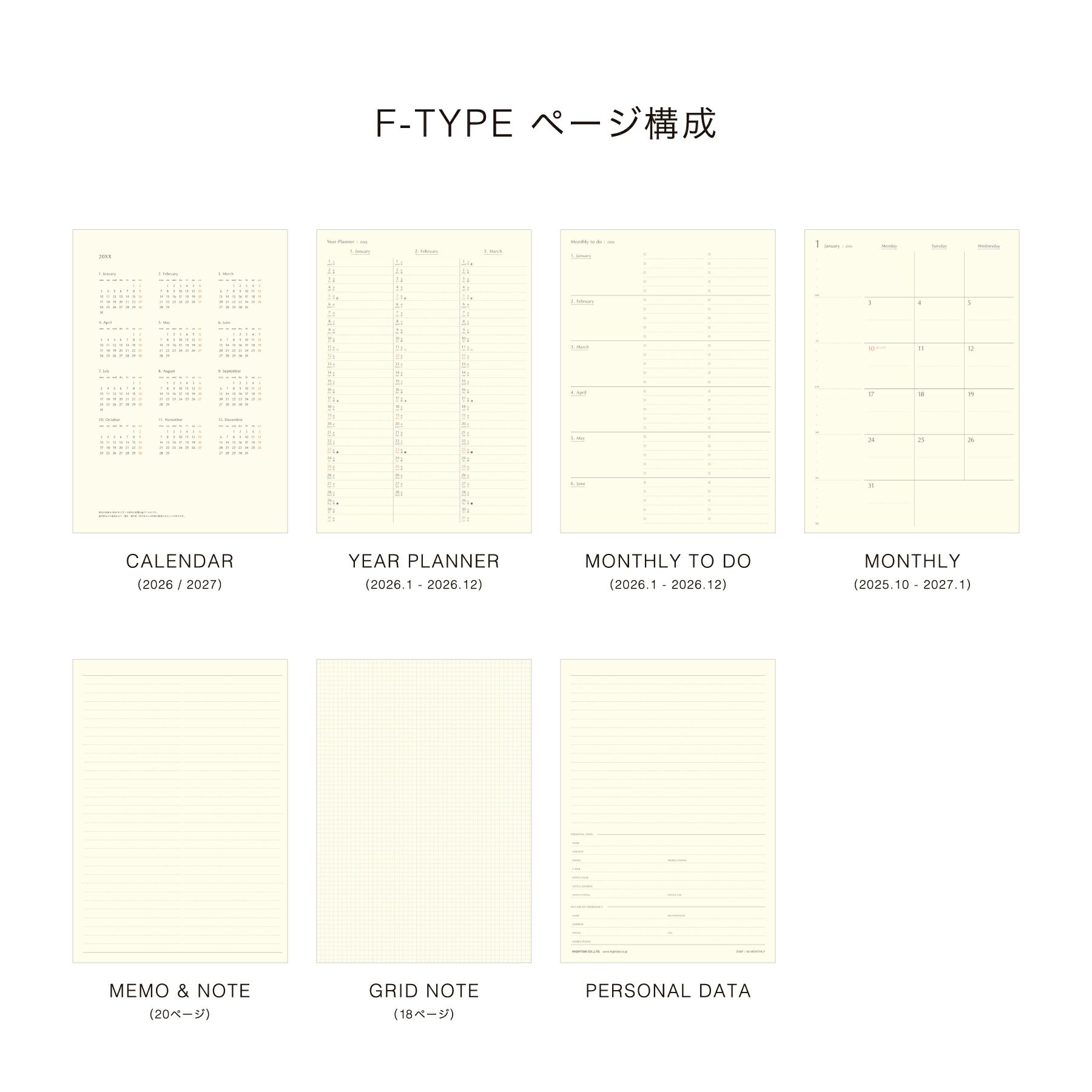 | 内容 | カレンダー、年間スケジュール、マンスリー TO DO、月間スケジュール、ノート、パーソナルデータ |