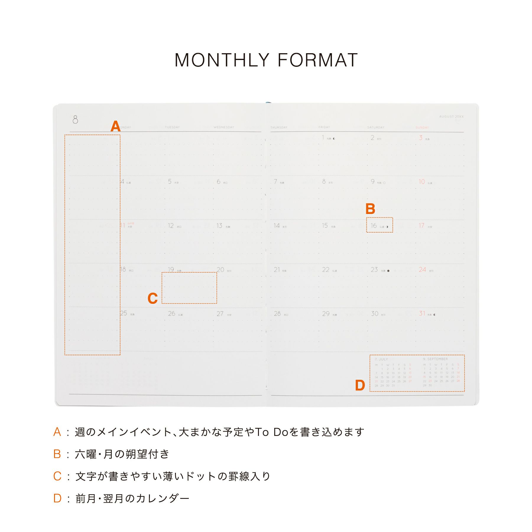 | 六曜 | 〇(マンスリーのみ) |
