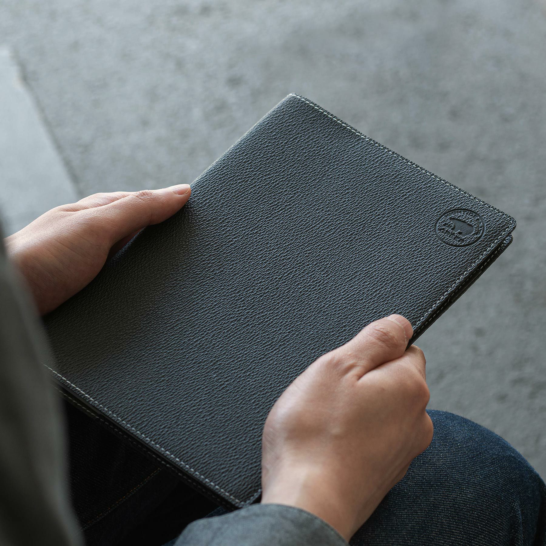 消印のようなシロクマのエンボスがワンポイント。ソフトで弾力のある肌触りで、太めの生成りステッチがカジュアルさを演出します。直営店だけの数量限定品です。