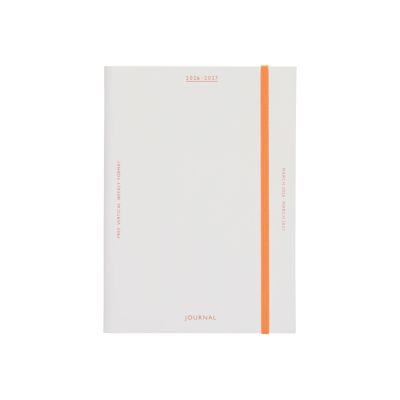しなやかに曲がり、水や汚れに強いビニールペーパー素材を使用した、ゴムバンド付きダイアリー。表紙のシャーベットカラーとロゴの配色がポイントです。直営店限定色はホワイトです。