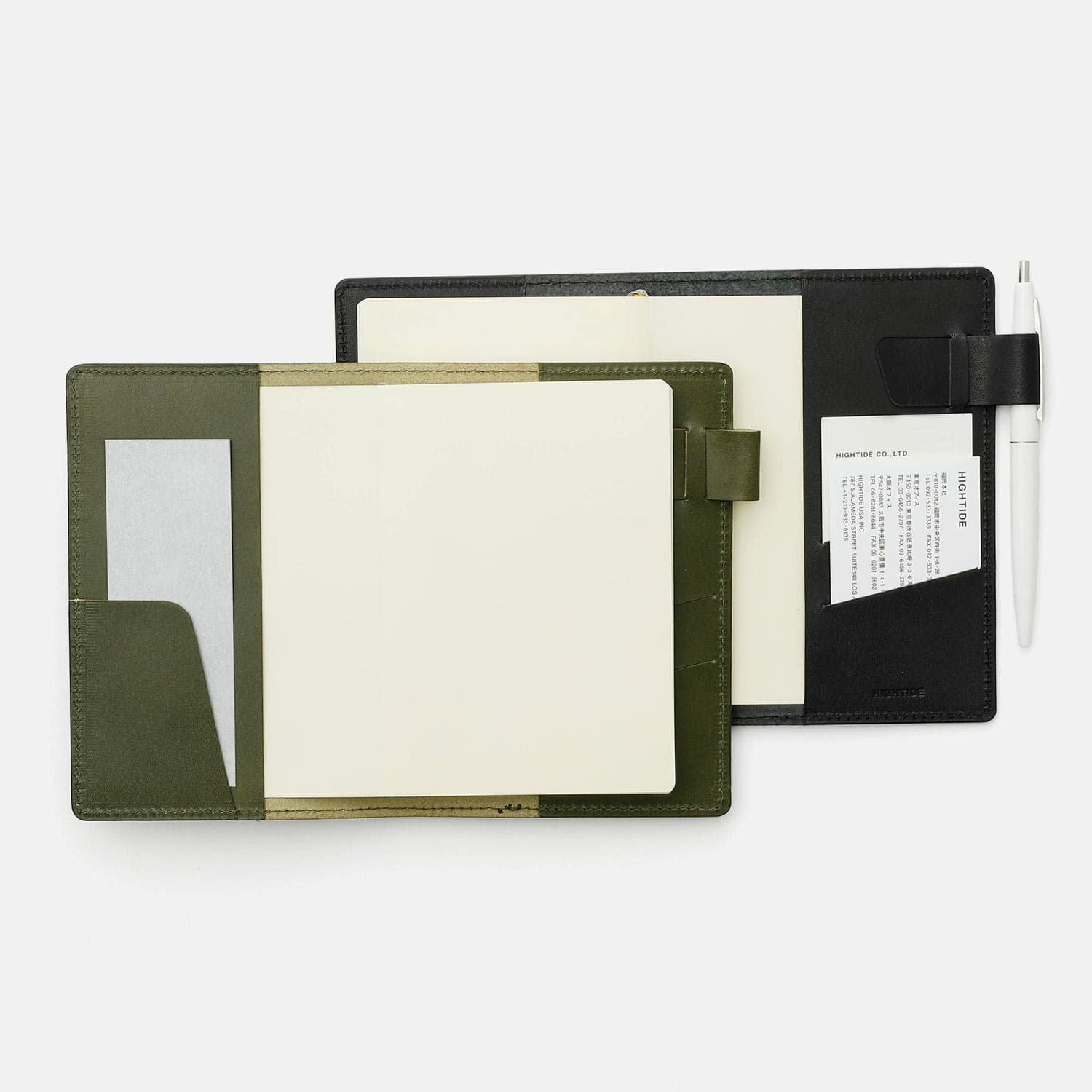 どのサイズも共通で、左側にコーナーポケット1つ、右側にカードスリットが2つが付きます。カバーの袖にも挟み込むことができるので、メモやシールなども一緒に持ち歩けます。※手帳のリフィルは別売りです。
