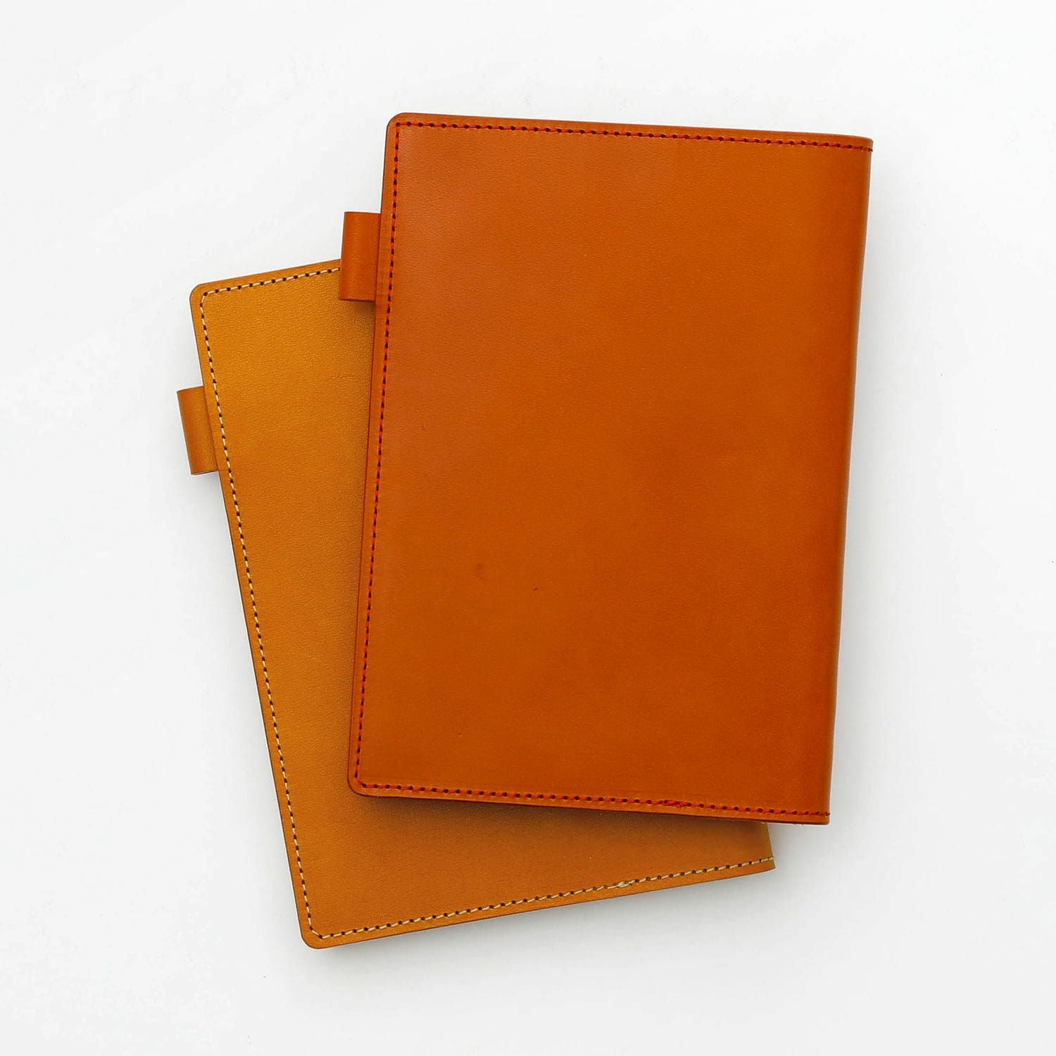 直営店限定ダイアリーカバーは、磨き、裁断、縫製という全ての作業を、国内の工房で行っています。天然素材を使い、ひとつひとつ職人の手作業で生産されているため、革の風合いやしわ、多少のサイズの差など、それぞれ表情が異なりますが、それもまたハンドメイドの魅力。ふたつと無い商品の個性として、愛着を持ってご使用いただけると幸いです。