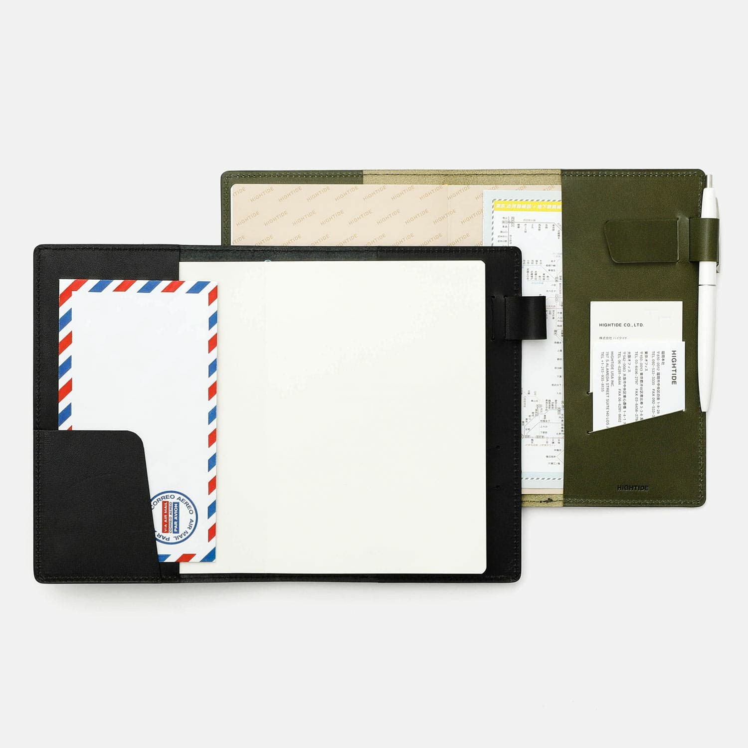 どのサイズも共通で、左側にコーナーポケット1つ、右側にカードスリットが2つが付きます。カバーの袖にも挟み込むことができるので、メモやシールなども一緒に持ち歩けます。※手帳のリフィルは別売りです。