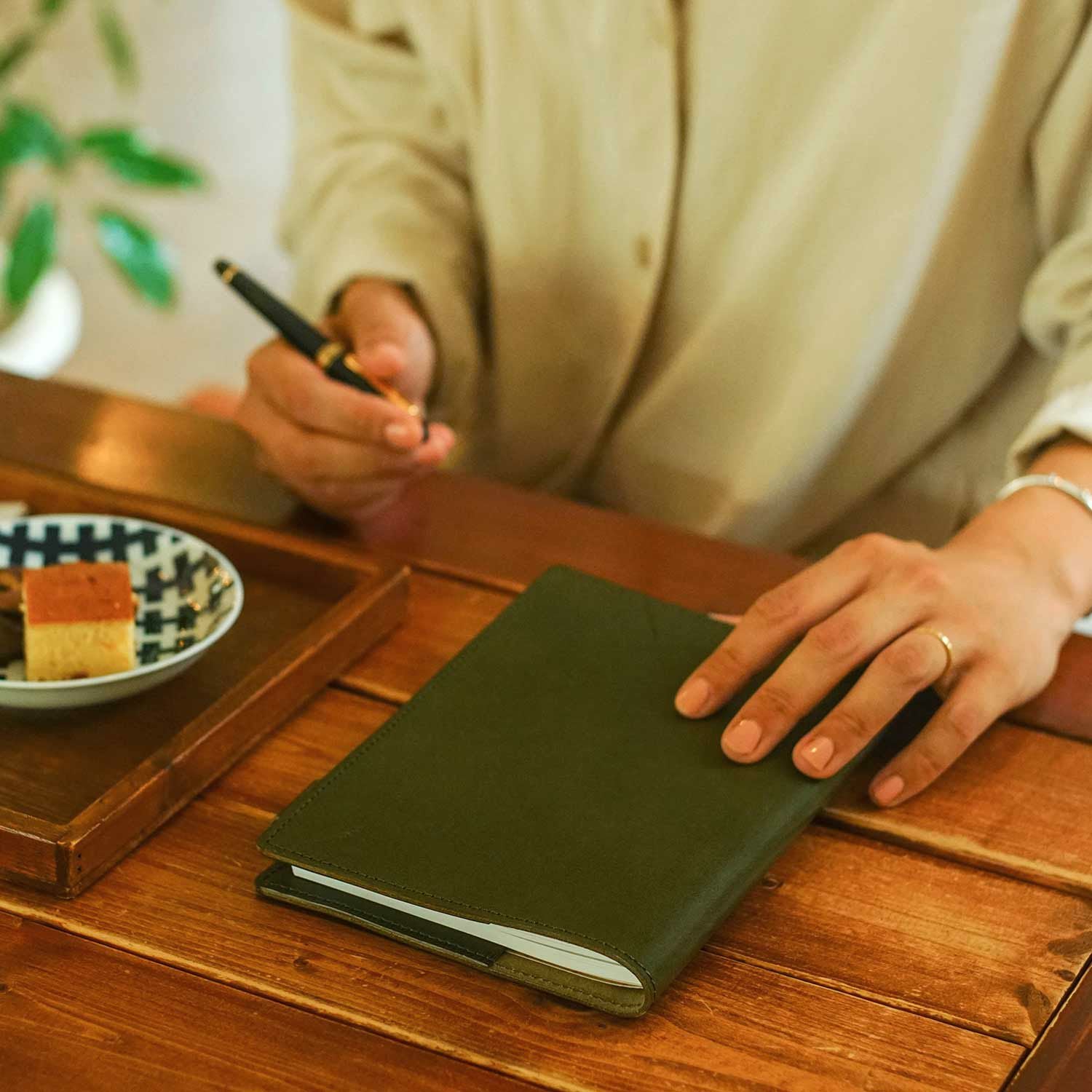本革を使用した直営店限定のダイアリーカバーです。 製作は、福岡は糸島に工房を構える「DURAM FACTORY」。職人が1点1点丁寧に作っています。シンプルなデザインでありながら、ハンドメイドならではの温かみを感じることができ、手にした瞬間から大切にしたいと思えるようなアイテムに仕上がりました。