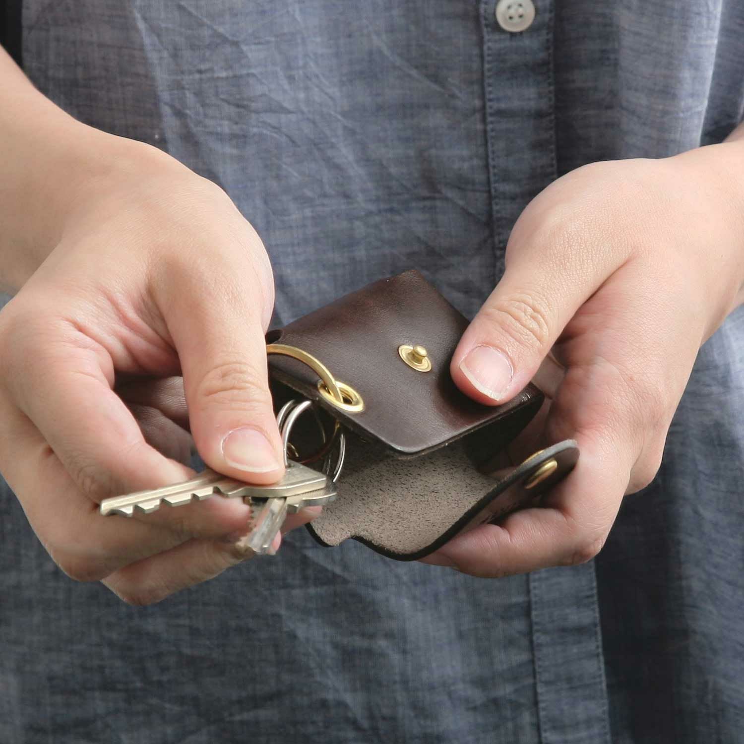 かさばる鍵の束をまとめて収納できるシンプルな作り。キーリングには複数の鍵はもちろん、スマートキーも取り付けることが可能です。表と裏の両方から開くことができるので鍵を取り出す時にもたつきません。