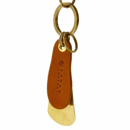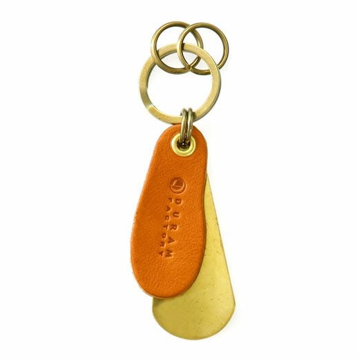 携帯するのに便利なキーホルダータイプの靴べら。鍵と一緒に持ち出せるのでいつでもどこでも使えます。落ち着いた渋い風合いの真鍮無垢の靴べらにタンニン鞣しの革タグを付けています。大きなキーリングには小さなキーリング2つ、シューホーンのつなぎには二重にマルカンを施し強度を上げています。シンプルなつかい心地でギフトにも人気の一品。長く使い込めば革の経年変化もお楽しみいただけます。