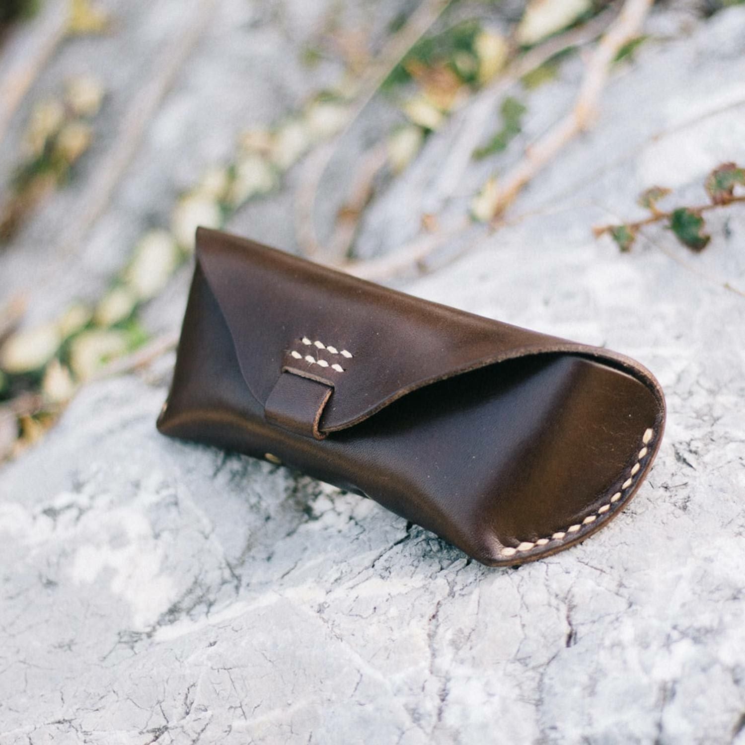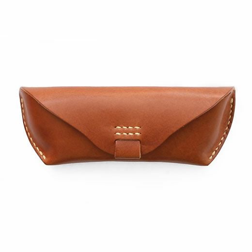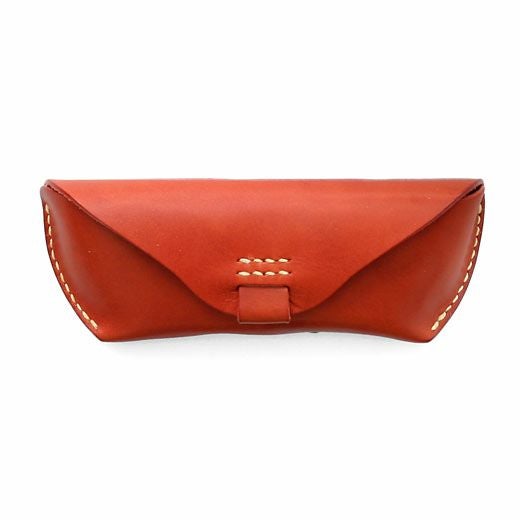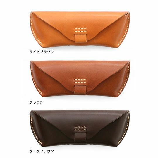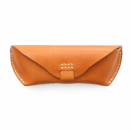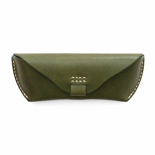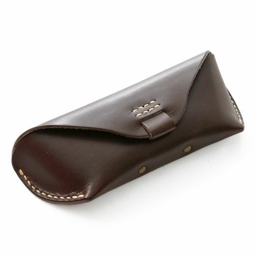アウトラインが美しい眼鏡ケース。直線と曲線が織り成すエッジの効いたフォルムは、カジュアルな雰囲気ながらもどこか上品。内側にはノーズブリッジ(鼻あて)付きで持ち運びの際も心配なし。こちらのLサイズならサングラスにも対応します。革本来の風合いを活かしたタンニン鞣し多脂革を使用し、縫製は極太の麻糸で、全て手作業によって丁寧に縫い込まれています。使い込むほどに味わいが出て色艶も深みを増すので愛着を持ってご使用いただけます。