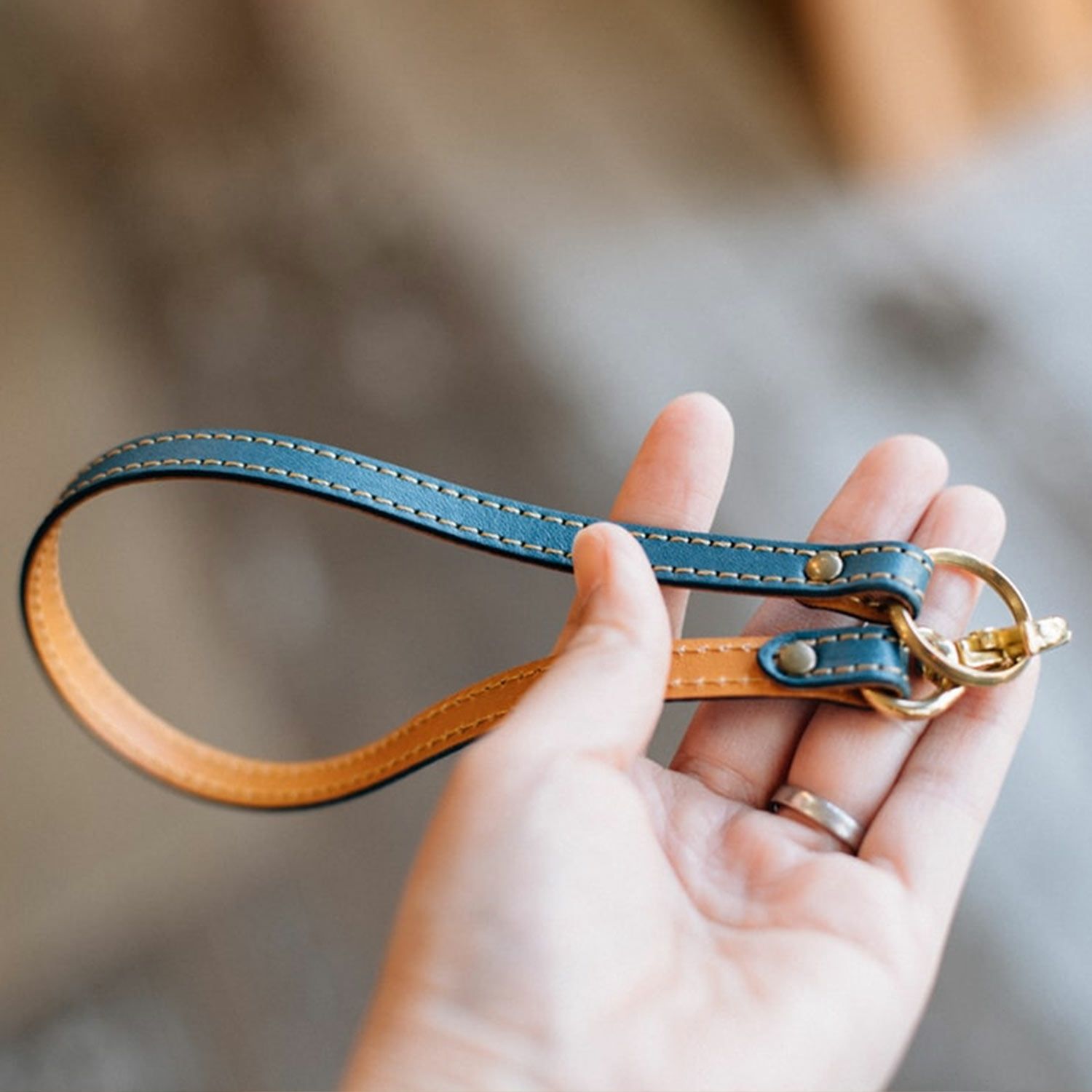 用途に合わせて様々な使い方ができる、レザーのマルチストラップです。裏面はどの色もブラウンの革を使用しており、表の革との色のコントラストがカジュアルな雰囲気。輪にしてカバンの持ち手に付けたり、ウォレットチェーンのように使ったりと、アレンジしてお使いいただけます。長く使い込むことで色艶が増していく革小物ならではの経年変化をお楽しみください。