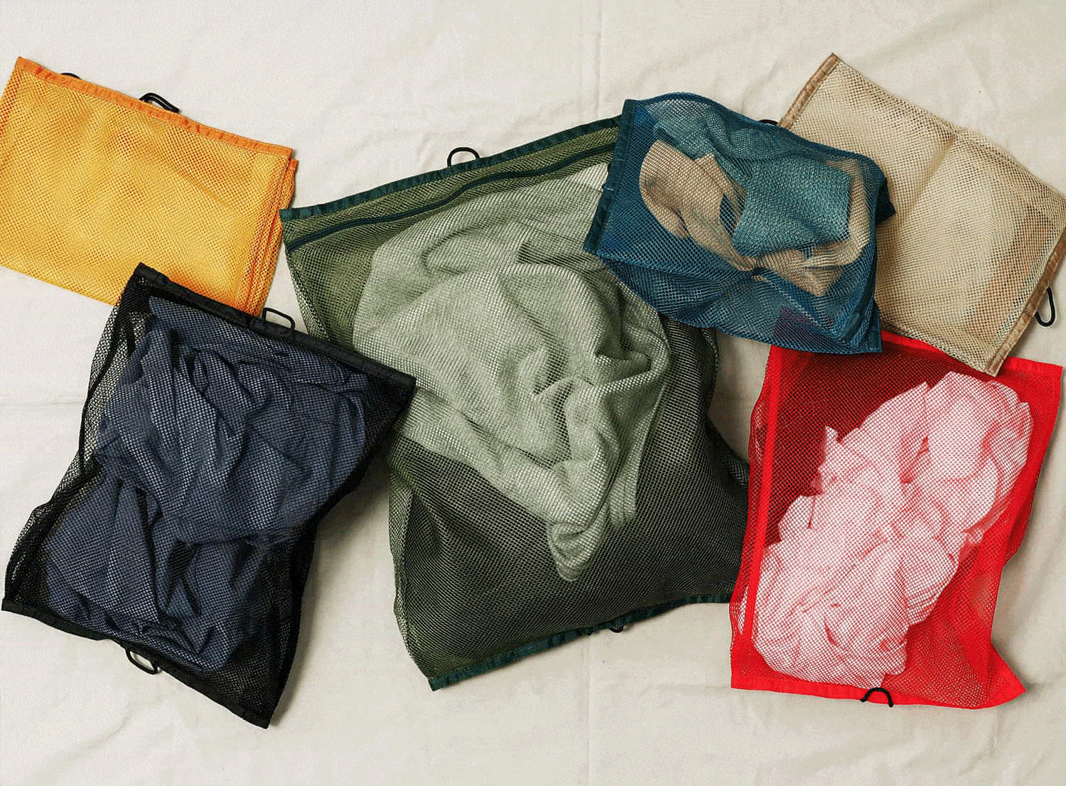 パッキングに欠かせないポーチ。付属のメッシュバッグに旅先で脱いだ衣類を入れて、帰宅後はポイっと洗濯機へ入れるだけなので洗濯がラクに。
