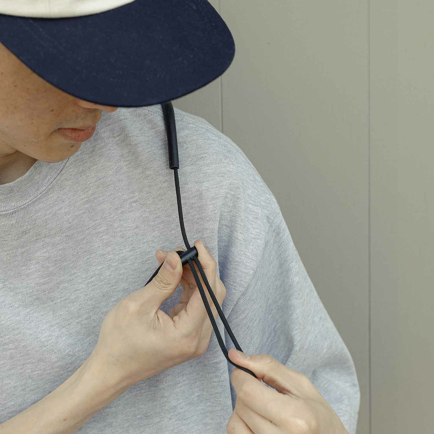 ショルダーコードはパーツをつまむだけで簡単に調整可能です。