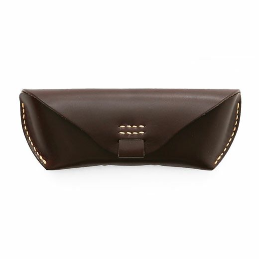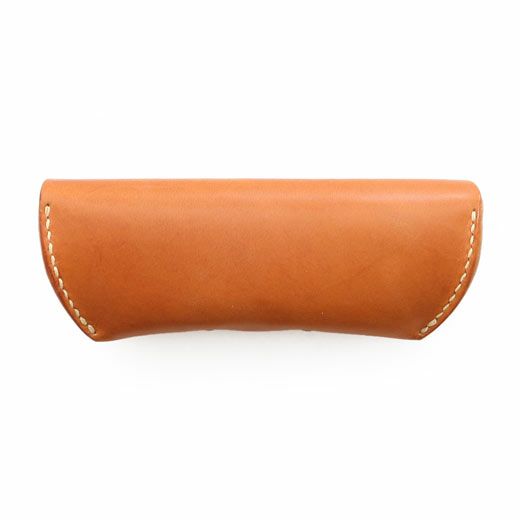 アウトラインが美しい眼鏡ケース。直線と曲線が織り成すエッジの効いたフォルムは、カジュアルな雰囲気ながらもどこか上品。内側にはノーズブリッジ(鼻あて)付きで持ち運びの際も心配なし。こちらのLサイズならサングラスにも対応します。革本来の風合いを活かしたタンニン鞣し多脂革を使用し、縫製は極太の麻糸で、全て手作業によって丁寧に縫い込まれています。使い込むほどに味わいが出て色艶も深みを増すので愛着を持ってご使用いただけます。