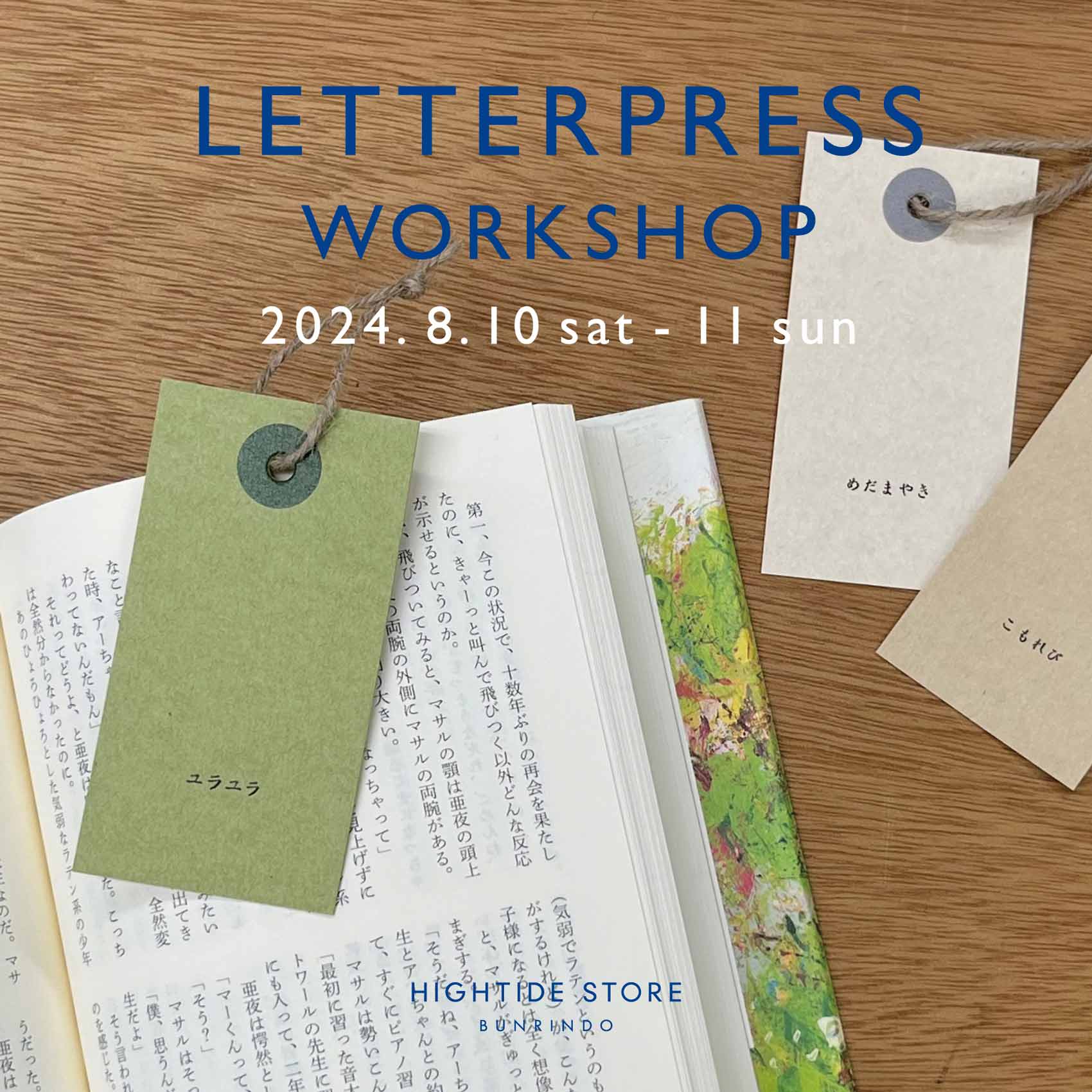 福岡・鳥飼のHIGHTIDE STORE BUNRINDOでは、8/10(土)11(日)の2日間、活版印刷の体験ができるワークショップを開催します。