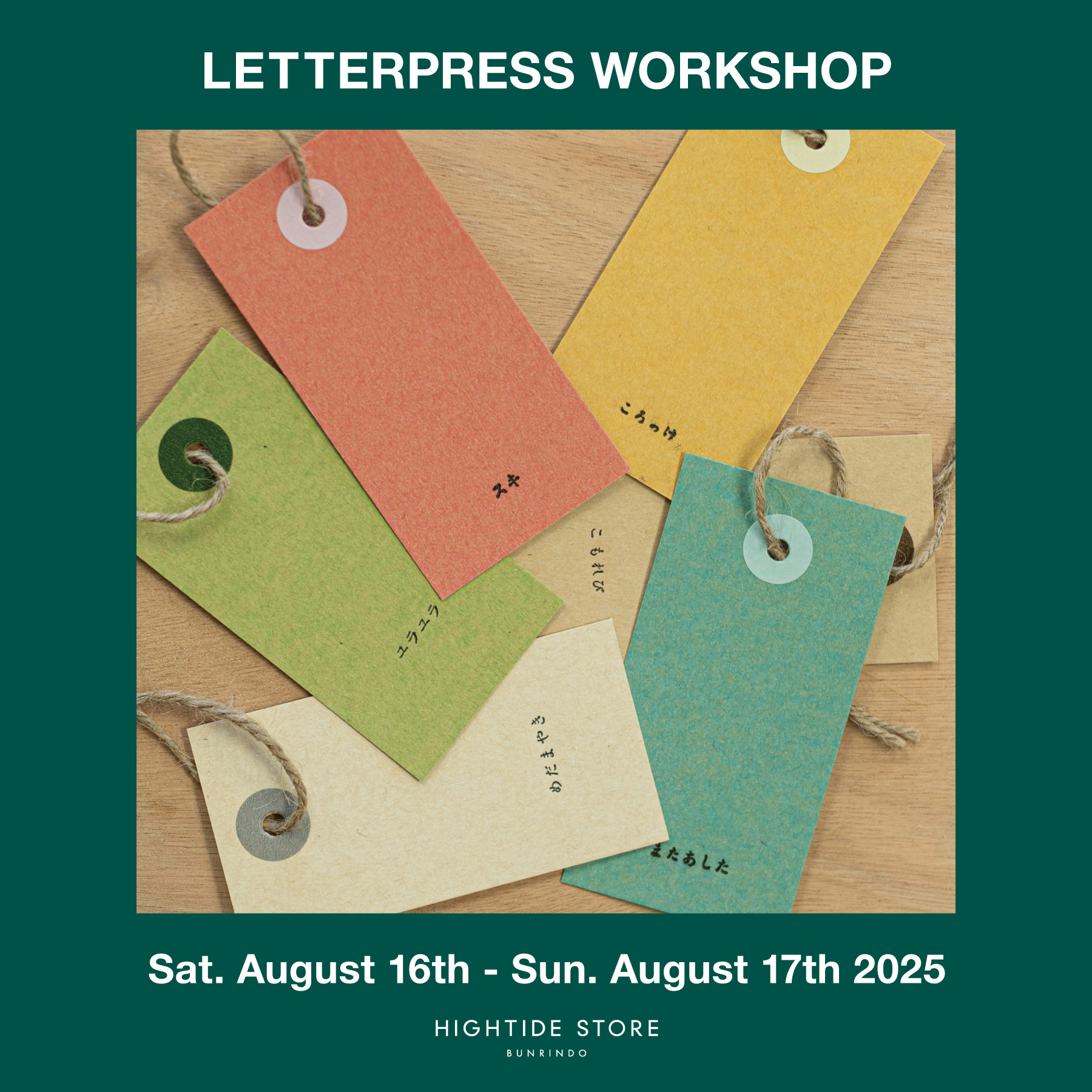 福岡・鳥飼のHIGHTIDE STORE BUNRINDOでは、8/16(土)、17(日)の2日間、活版印刷の体験ができるワークショップを開催します。