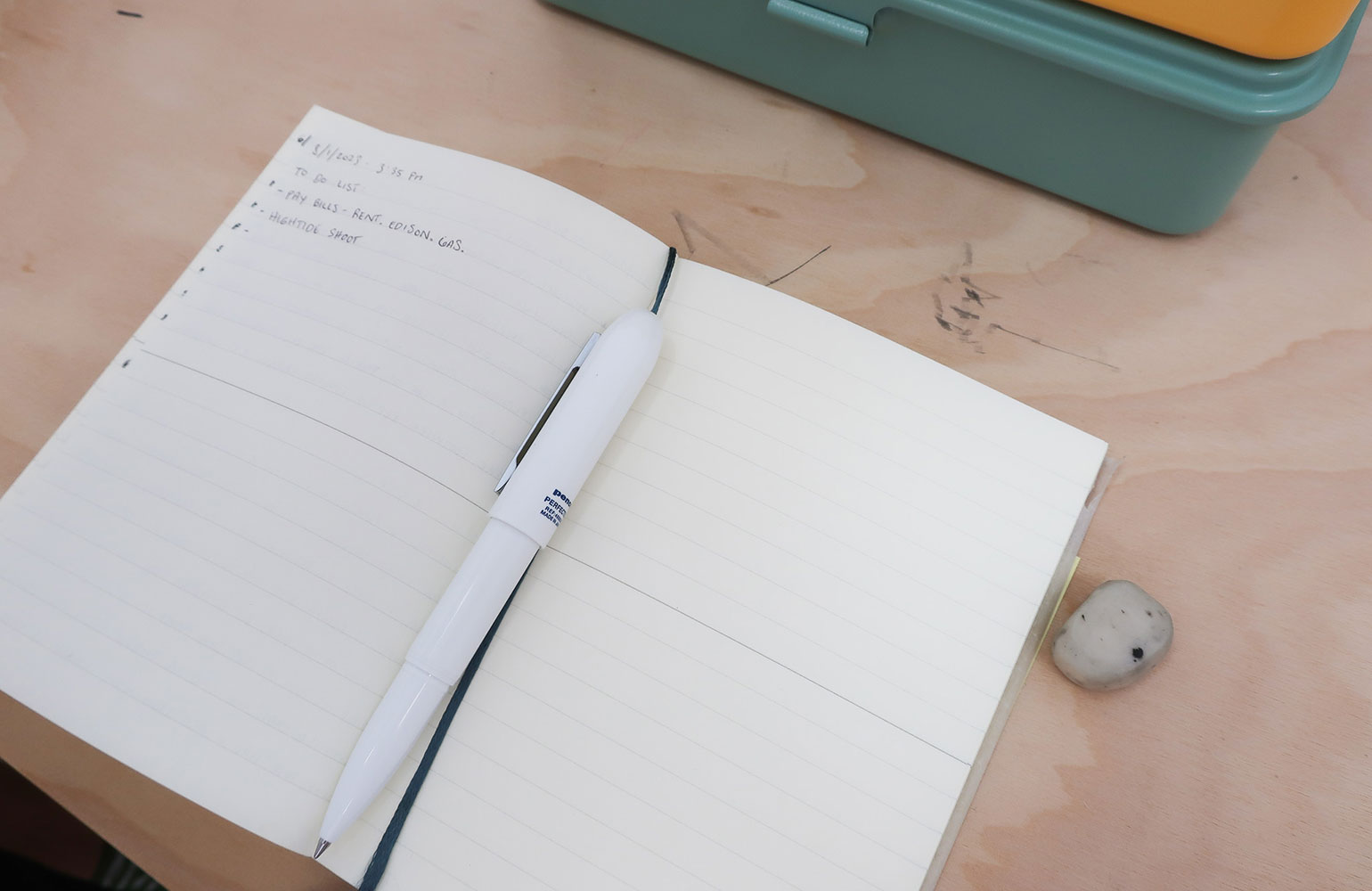 〈ミドリ〉のMDノートA6サイズは、To-Doリストを作ったり、一日を通して思いついた考えやアイディアを書き留めるのに使っています。
