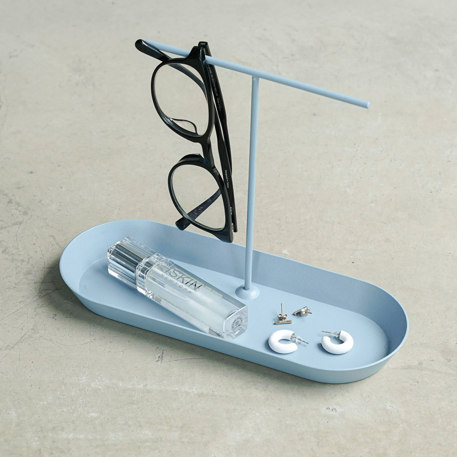 メガネやアクセサリー類を掛けられるスタンドと、小物を収納するトレイが一体となった「アクセサリートレイ」。