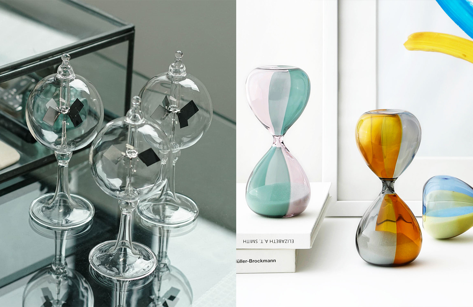 インテリアにアクセントを加える、ガラス素材を用いた「砂時計(バイカラー)」、「ラジオメーター S」が5月10日(金)より新発売。