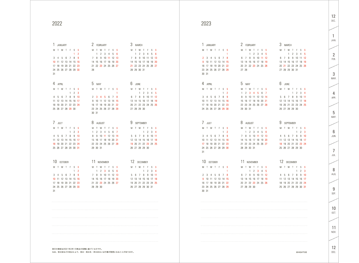 | 2 - 3 | カレンダー(2022年〜2023年) |