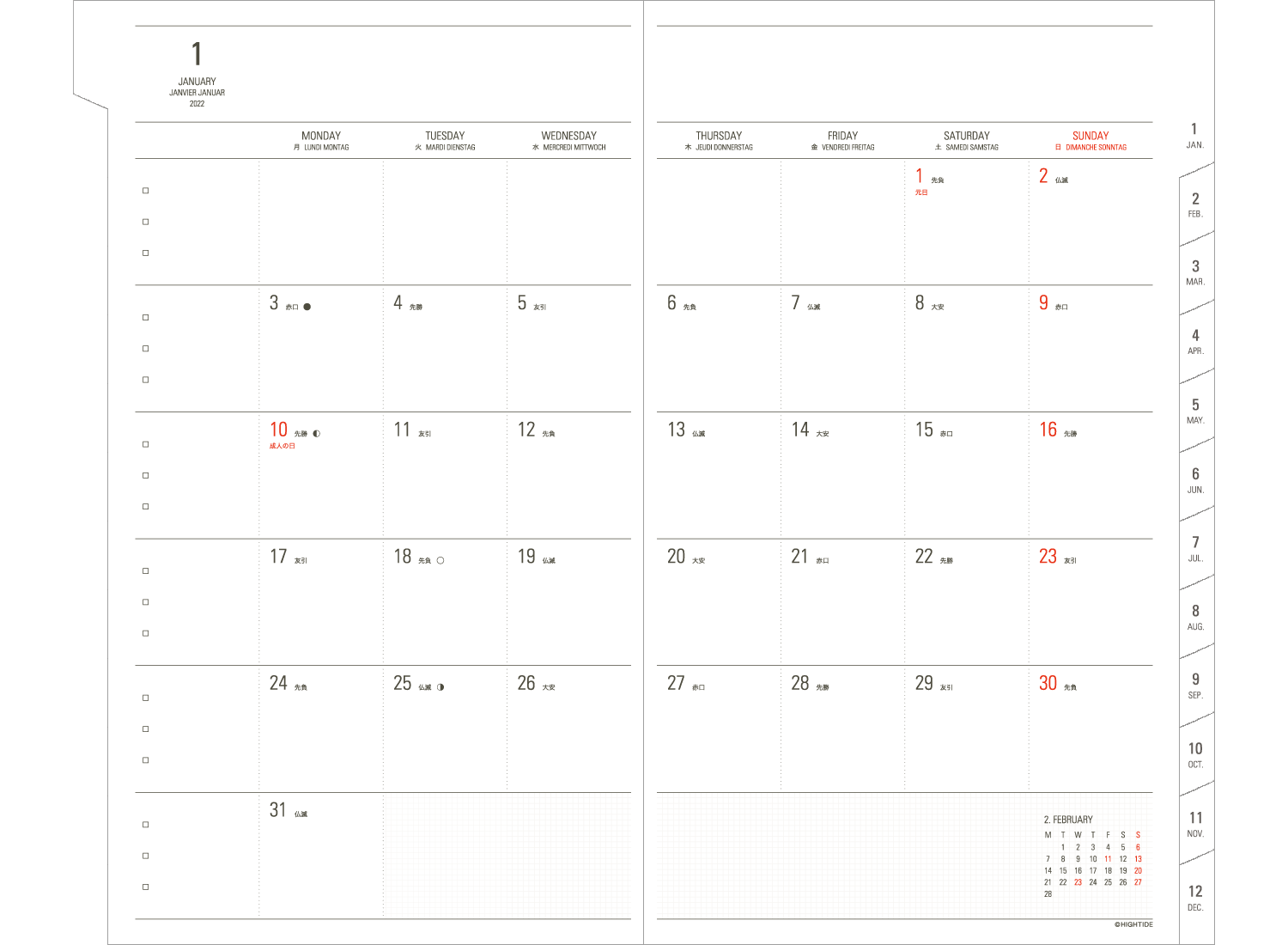 | 月の満欠表記 | スピン | 月間インデックス | 主要都市地下鉄路線図 | ページ数 |